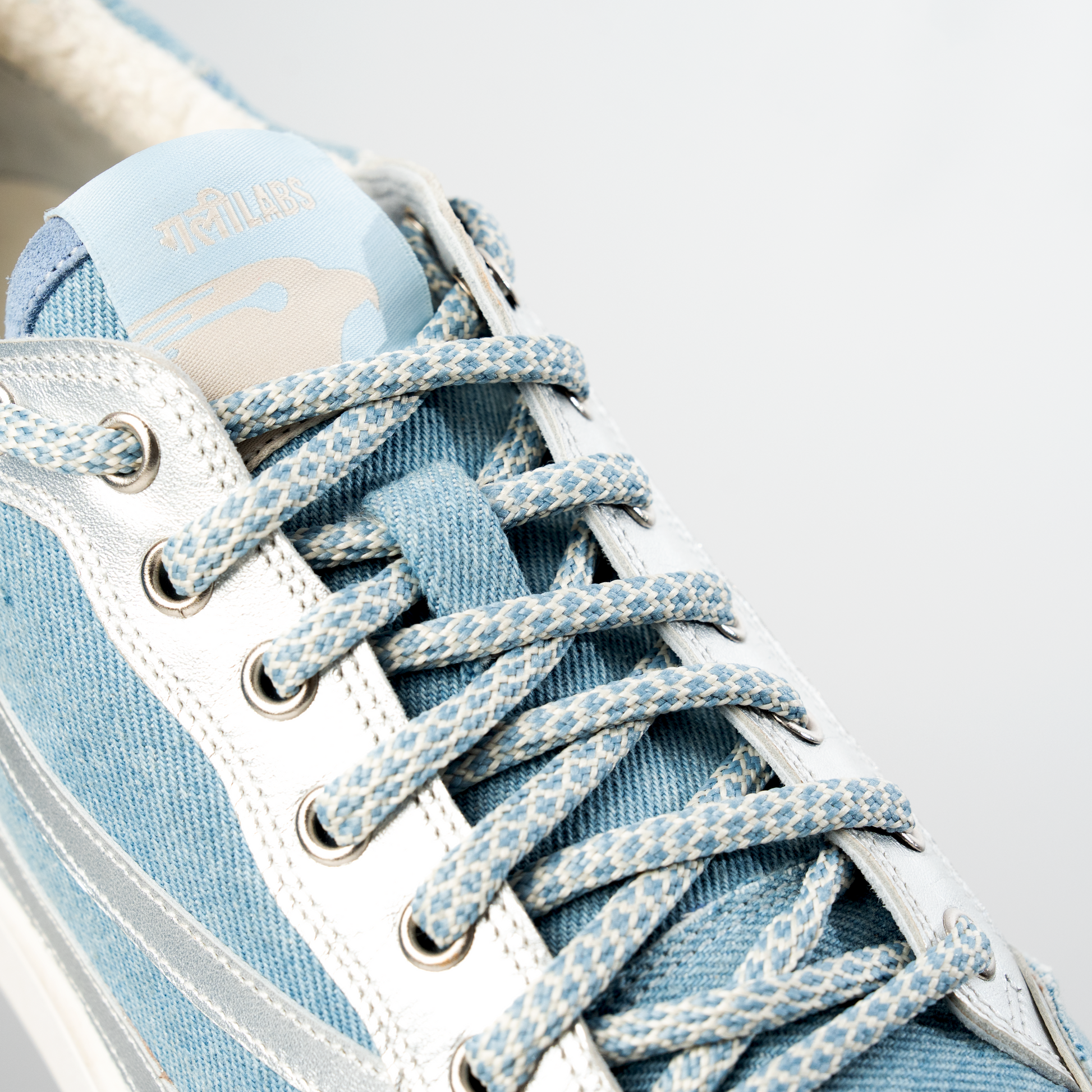 Circular laces and metal eyelets for strength and an urban aesthetic